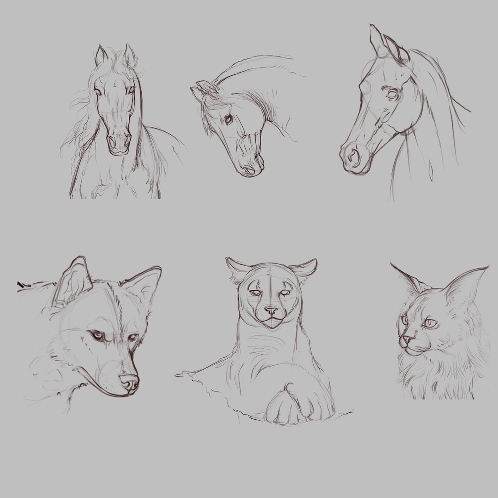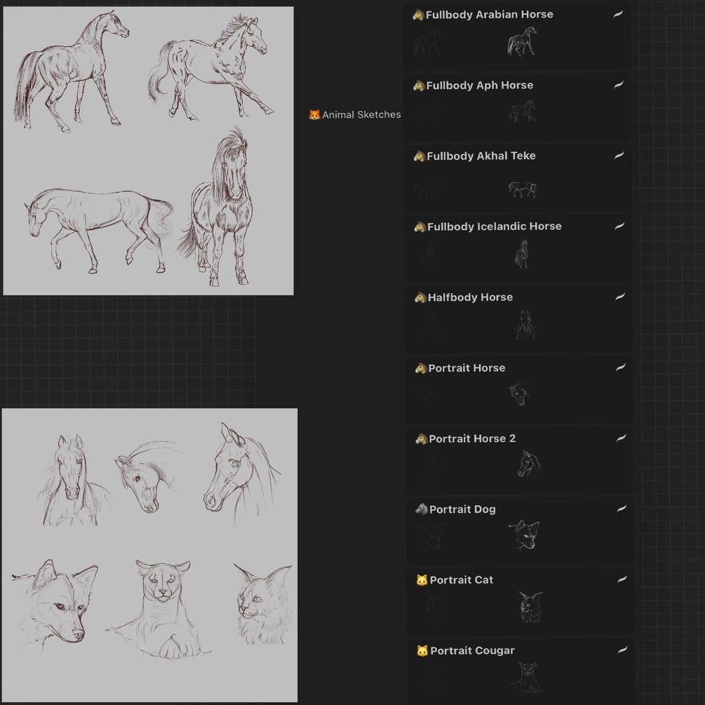 4 Full body horses, 1 half body horse and 1 half body cougar, 2 horses portraits, 1 dog portrait and 1 cat portrait